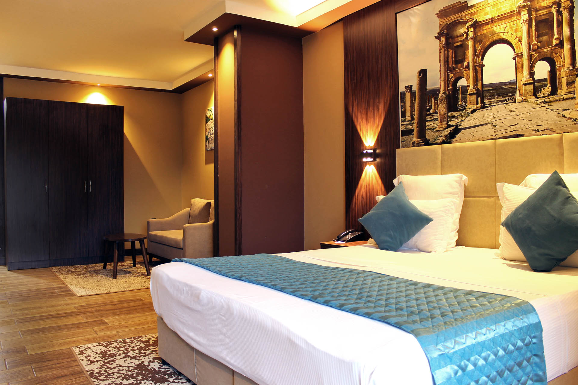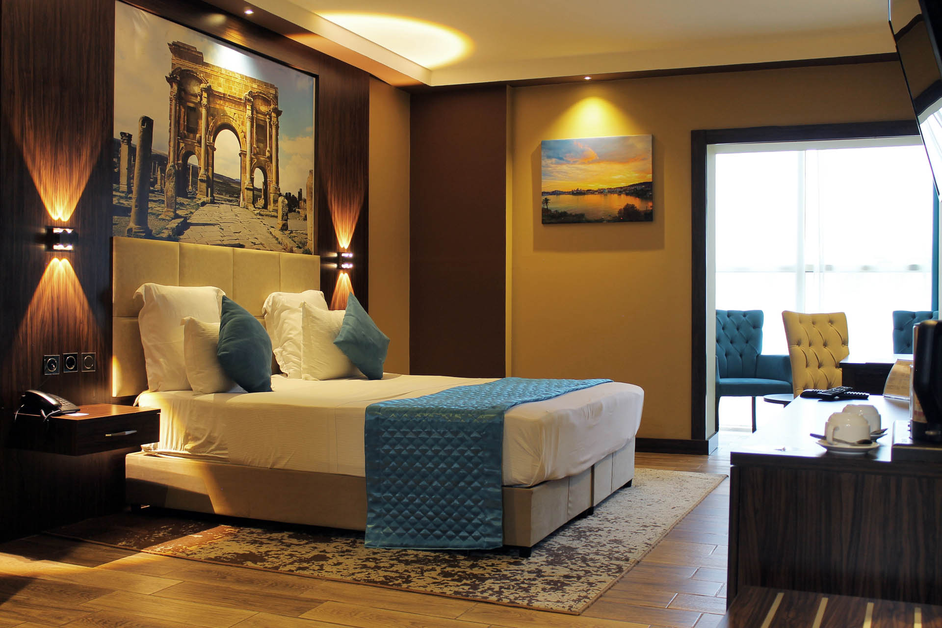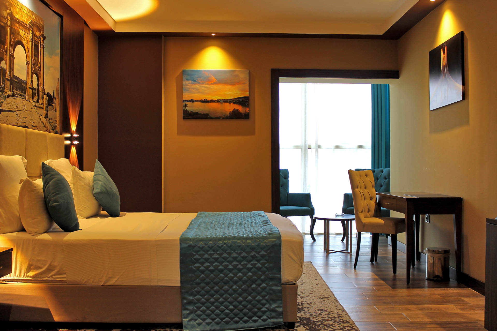 Suite Single, non-fumeur, équipée de : literie haute gamme, sofa, armoire/penderie, espace bureau, minibar, plateau de courtoisie, connexion wifi gratuite, téléphone, télévision intégrée HD, chaînes satellites, chauffage, climatisation, salle de bain dotée d’une baignoire, sèche-cheveux, produits d’accueil de luxe, navette aéroport.